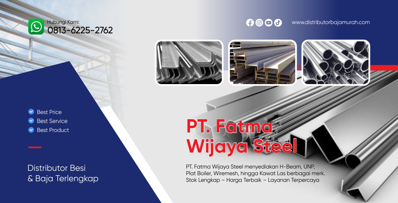 PT. Fatma Wijaya Steel adalah perusahaan distributor yang bergerak di bidang penyediaan besi dan baja, alat-alat teknik, serta bahan bangunan untuk kebutuhan konstruksi skala kecil hingga proyek besar. Berlokasi di Jl. Green Lake City Boulevard No. 6, Cipondoh, Tangerang, kami melayani pengiriman ke seluruh wilayah Indonesia dengan jaringan logistik yang handal dan produk berkualitas tinggi.